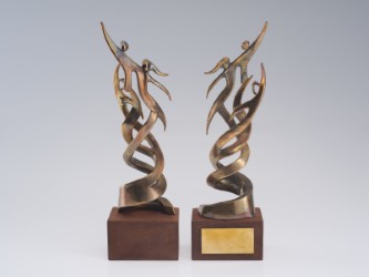 Skulptuur kujutab mees- ja naisfiguure, mis põimuvad ülespoolse tõusva spiraalina