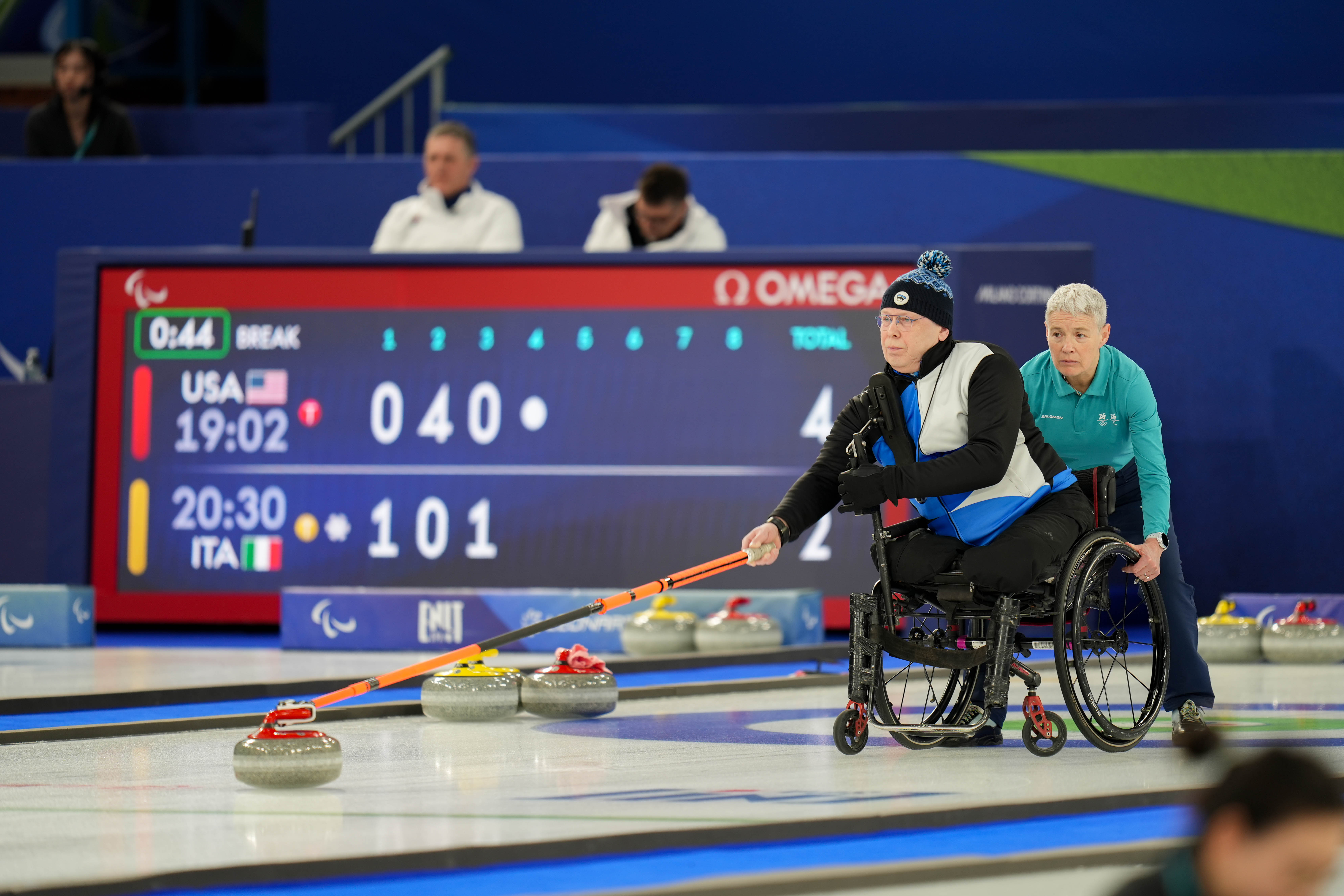 Milano Cortina paralümpiamängude ratastoolikurlingu segapaarismängu turniiri kuuendas voorus kaotas Eesti paar Kätlin Riidebach - Ain Villau Jaapani duole Aki Ogawa - Yoji Nakajima tulemusega 3:8.